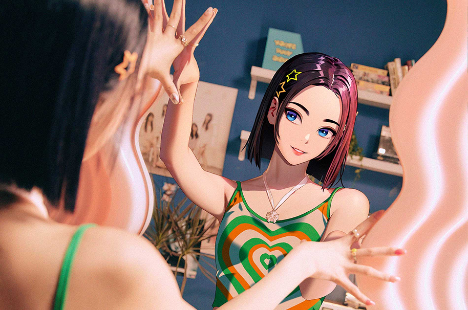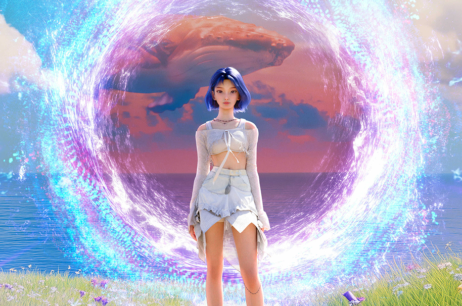 预示着她将透过屏幕在现实世界和数字世界中自由穿梭,展开活动。